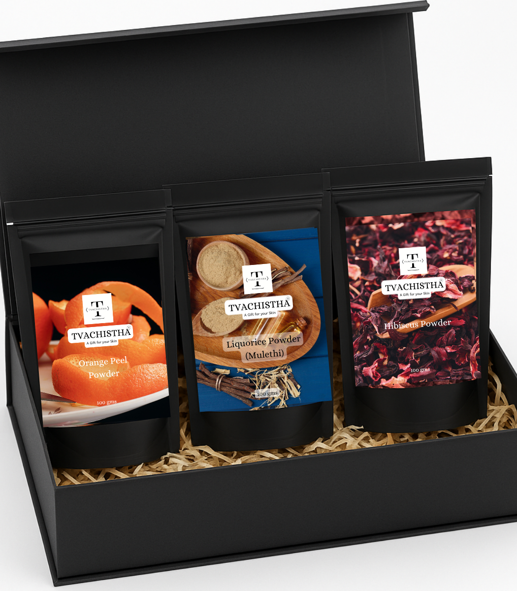 Tvachistha Signature Pack Gift Hamper | Natural Skin & Hair Care Gift Set | Herbal Powders & Essential Oils | For Women & Men | Handmade Gifting Box